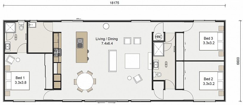 At one end of your home is your private master bedroom with ensuite. At the other end of the home is the perfect teenager or guest zone with two large sized bedrooms – both with direct access to a shared bathroom.