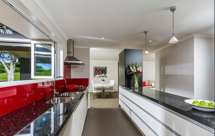 This elevated section with charming views fits perfectly a brand-new luxury transportable Keith Hay Home that is 140m2, with three bedrooms and two bathrooms, and two living areas. It complies fully with healthy home standards and features high-spec fittings in the kitchen and bathrooms. Additionally, it includes a septic system and two water tanks.