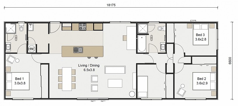 - Allowance for connections to site services including septic tank system, water tank & pump, underfloor plumbing & power connection