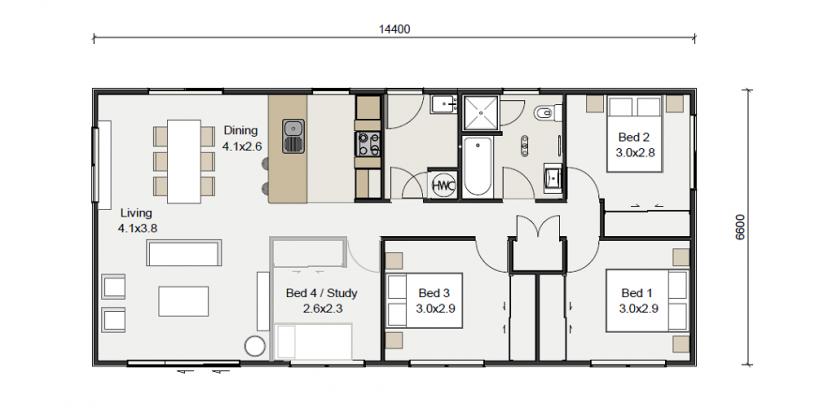 Keith Hay Homes are offering their versatile Legacy 95 plan which is an excellent starter home, rental or for retiree’s wanting to downsize. This plan offers three double bedrooms, open plan kitchen/living/dining room, bathroom and separate laundry area. There are options to customise the plan and add an en-suite, front door, roof shape, kitchen as well as cladding options.