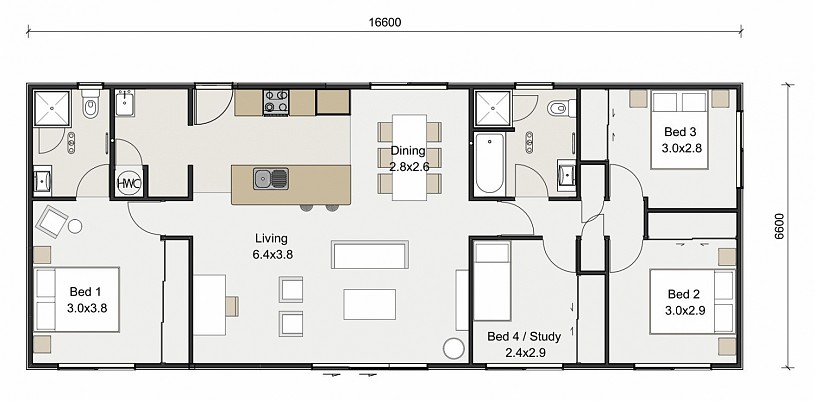 The Legacy 110 thoughtfully designed layout provides ample space for both family and guests, with a spacious master bedroom and ensuite at one end, and three bedrooms sharing a bathroom at the other end.