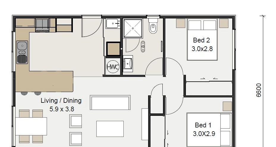 Are you looking for a minor dwelling to go on the back of your section? Look no further, we have this lovely 65m2 2 bedroom plan under construction ready to built for you. This home makes a great secondary dwelling or even as a beach bach.
